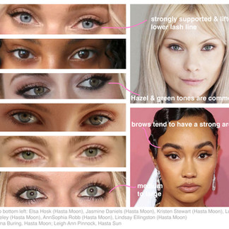 There are certain features that can be telltale signs of a nakshatra, even if the natives do not always look overtly similar across all features. There are a few specific features I love to check for when I'm suspecting that Hasta हस्त nakshatra (10° – 23° 20′ Virgo sidereal) may be present, which calls to mind common artistic depictions of fairies. Hasta beauty is especially defined by their tight and lifted lower eyelid and rounded upper eyelid, giving their medium to large almond eyes a striking & open appearance, accentuated by their naturally thin and arched brows. Hazel and green tones are very common for Hasta eye coloring, and their eyes are often made even more distinct by their clean and thick limbal rings.